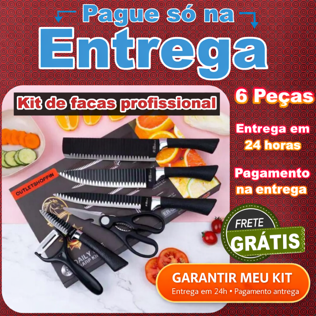 Este Kit de facas de corte conta com seis peças em revestimento antiaderente, lâminas super afiadas e lindo design, na cor preta O cabo ergonômico garante maior segurança no manuseio São peças de aço inox com grande durabilidade e alta qualidade, garantindo um corte perfeito e equilibrado das carnes.